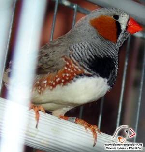 Es un ave de pico más corto que su pariente Gould, también posee una belleza fantástica. Existen 8 colores básicos y más 400 colores diferentes, resultado de mutaciones a lo largo de los años. El Diamante mandarín se hizo muy popular en todo el mundo por la variedad de dibujos que su pelaje presenta. Estas aves son naturales de Australia, donde viven en grandes bandadas que pueden reunir a doscientos ejemplares. El Diamante mandarín (Taeniopygia guttata) es un ave reconocido por su plumaje de suave color crema y pico y patas de fuerte color rojizo.